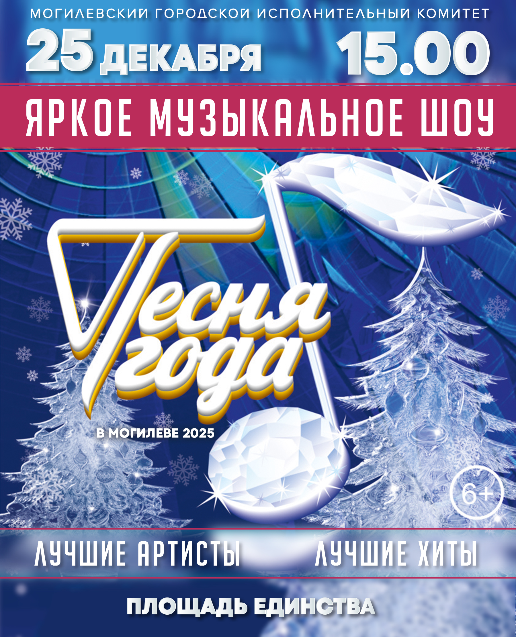НАШИ НОВОСТИ Приглашаем Вас на яркое музыкальное шоу «Песня года в Могилеве», / которое пройдет 25 декабря в 15.00 на Площади Единства.