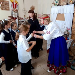 Детей знакомят с белорусским фольклором, старинными предметами быта, проводят мини-экскурсию по белорусской хатке.